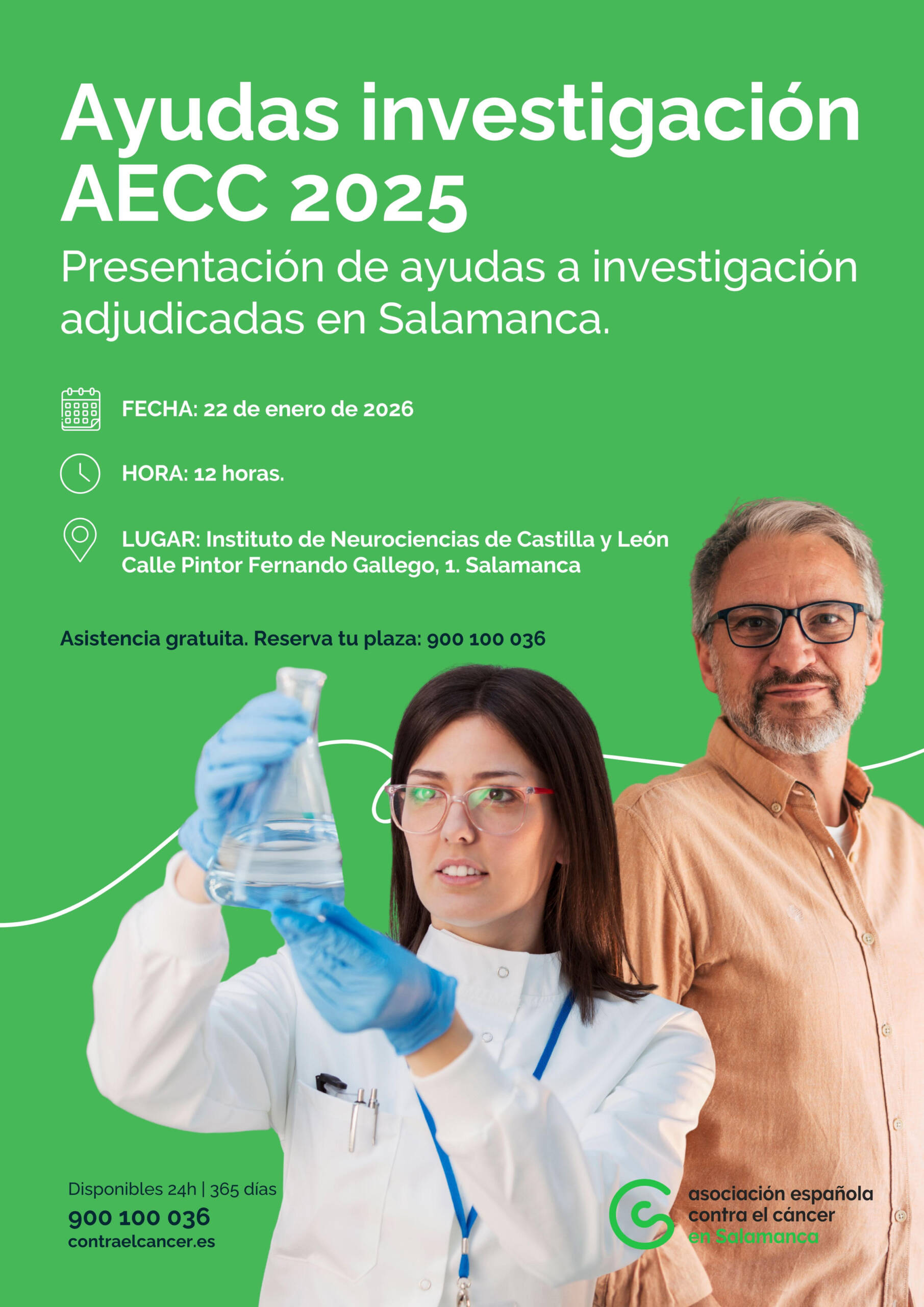 El Instituto de Neurociencias de Castilla y León acogerá el próximo 22 de enero de 2026, a las 12:00 horas, el acto de presentación de las Ayudas a la Investigación AECC 2025, una jornada dedicada a dar a conocer los distintos programas de apoyo a la investigación impulsados por la Asociación Española Contra el Cáncer y los proyectos financiados este año en Salamanca.